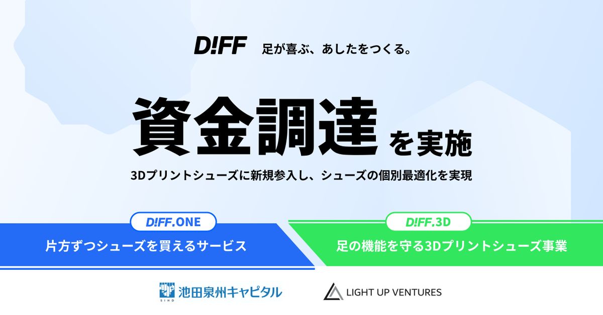 片方ずつシューズが購入できるECサービス「DIFF.ONE」を提供するDIFF.(本社大阪府、清水雄一社長)は4月2日、糖尿病患者などに向けた足の機能を守る3Dプリントシューズ事業「DIFF.3D」を開始し、医療分野向けサービスに参入する。