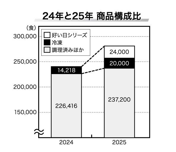 調理済み(冷蔵)は前期比4.8%増の23万7200食、「冷凍」が同40.6%増の2万食、「好い日シリーズ」は2万4000食の販売を計画する。