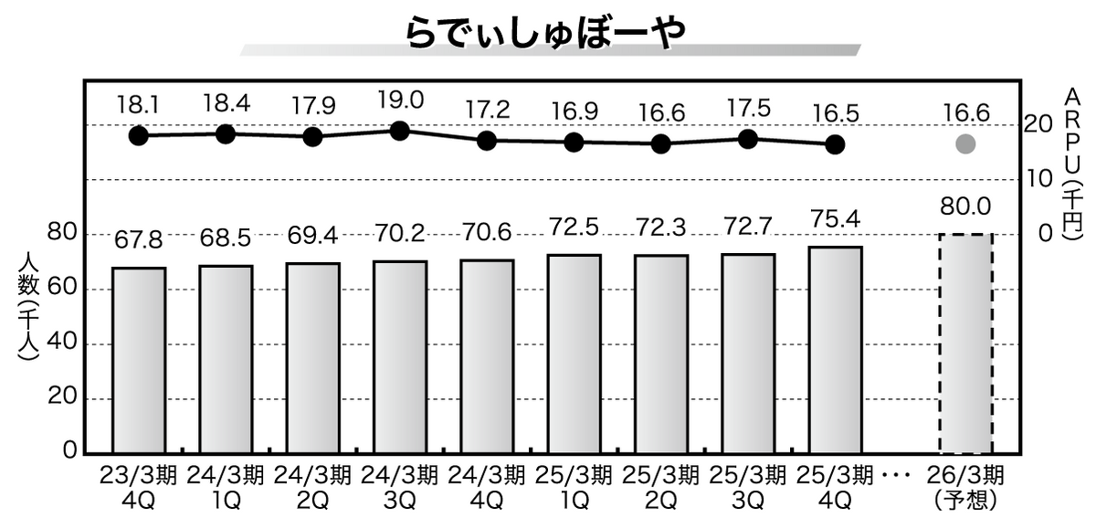 定期会員数は同1.1%増の3万6300人。会員1人当たりの月間購入金額は、前期に比べ2.6%減の2万3200円だった。