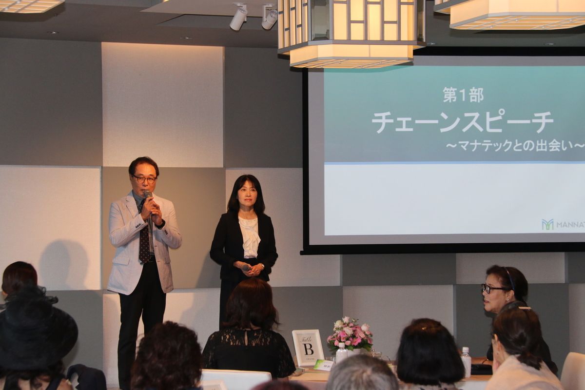 初日の16日に東京・GINZA SIXを会場に行われたイベントにはリーダーを中心に40人が参加。オープニングでは開業からの25年を振り返った映像を放映した。「マナテックとの出会いと思い」をテーマにしたスピーチを3グループ・7人の会員が行った。