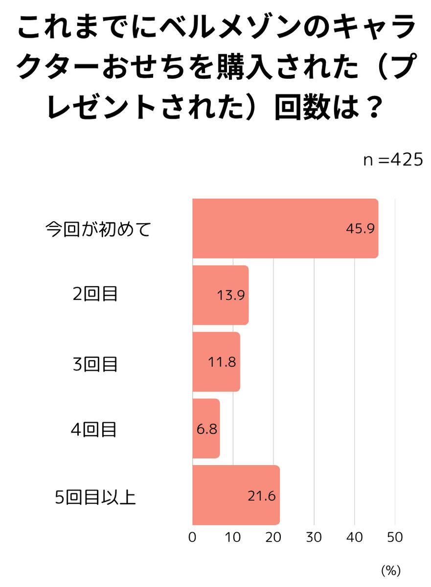 ▲これまでにベルメゾンのキャラクターおせちを購入した回数は