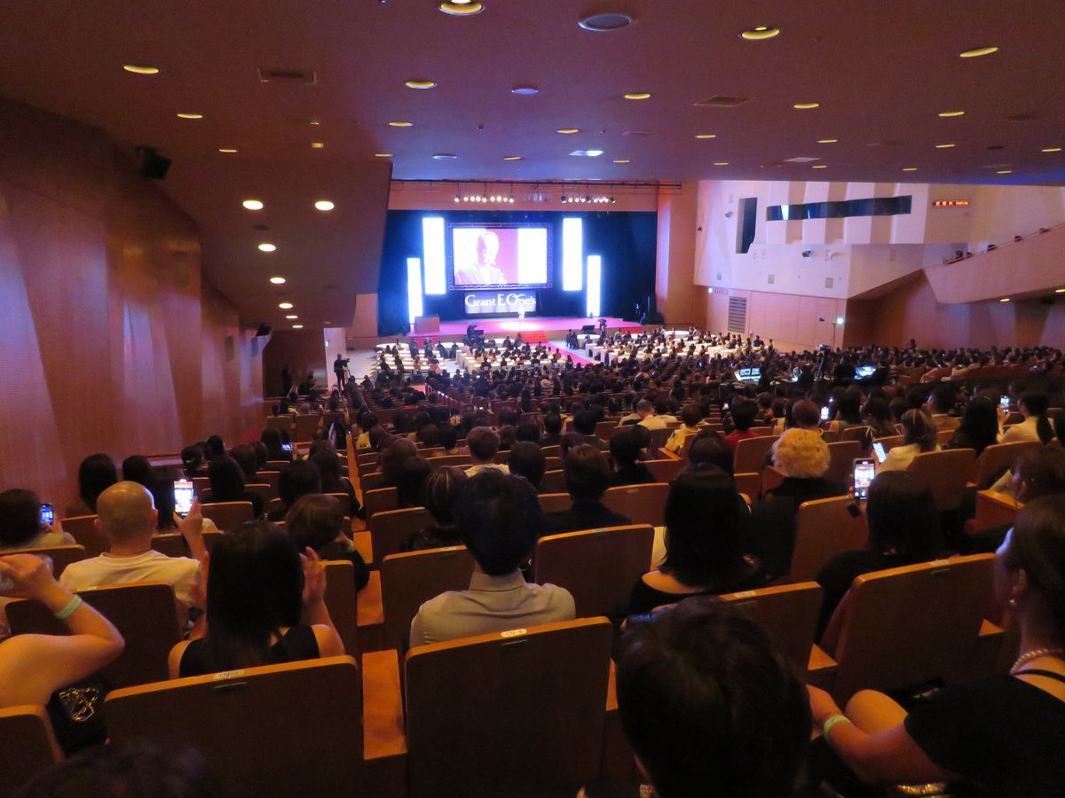同会では冒頭、厳かな雰囲気の中、神事が行われた。舞いの奉納も行われた。続いて、CRP(クラウンプレジデント)などのトップ会員を壇上で次々と紹介。最後にはトップ中のトップとして、WCRP(ダブルクラウンプレジデント)のタイトルを持つ百合本副社長を紹介した。