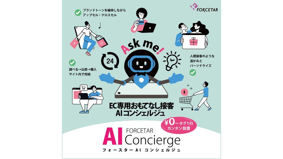 ECコンサルティング、システム開発のフォースター(本社静岡県、川連一豊代表)は10月1日、0円から導入できるAIチャットボットサービス「EC専用AIコンシェルジュ」の提供を開始した。ニーズが高まっているAIチャットボットを0円から導入できるようにした。先行導入企業において、CVR(転換率)が9.8ポイント改善した事例もあるという。