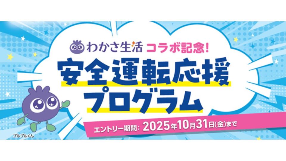 わかさ生活は、あいおいニッセイ同和損保と協力し、2025年10月の「目の愛護月間」に合わせて「安全運転応援プログラム」を実施している。このプログラムは、「テレマティクス自動車保険」の契約者を対象に、安全運転スコアに応じて抽選で「ブルーベリーアイ Wの効果(約1ヶ月分)」をプレゼントするというものだ。エントリー期間は2025年10月1日から10月31日までで、キャンペーンは11月の月間レポート対象期間に実施される。