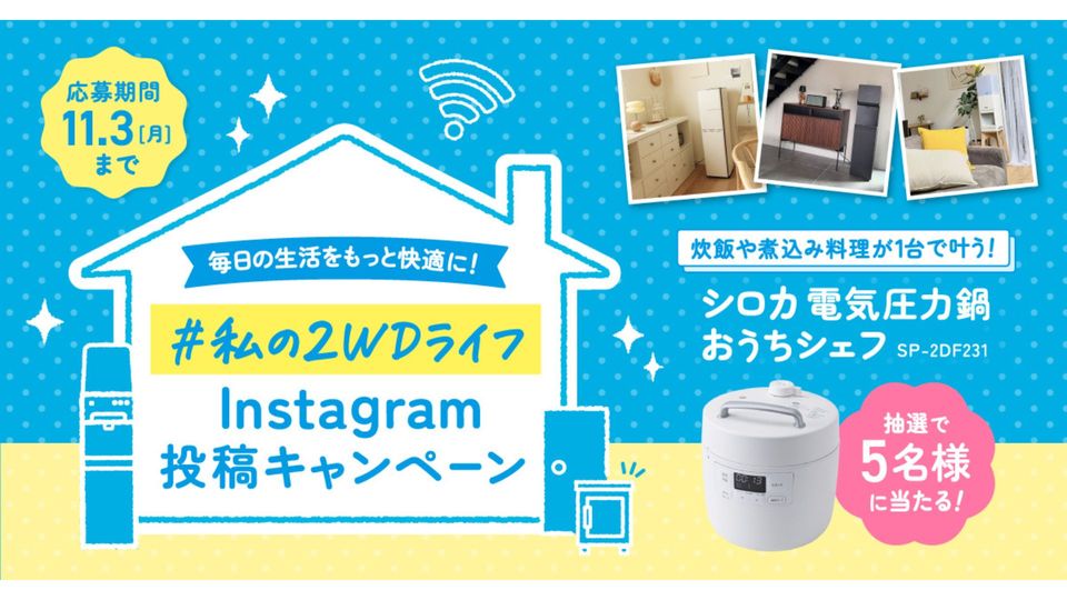 キャンペーン期間は2025年10月6日から11月3日まで。応募方法は、ウォーターサーバーの写真を撮影し、「#令和の三種の神器」「#私の2WDライフ」「#プレミアムウォーター」の3つのハッシュタグを付けてInstagramに投稿すること。写真の枚数制限はなく、過去に撮影した写真でも応募可能だ。