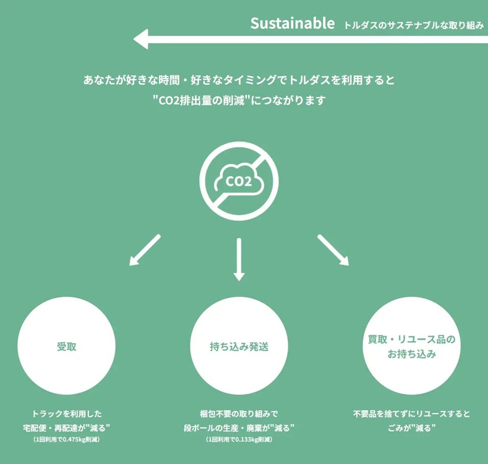 「トルダス」は、再配達の削減や梱包資材の再利用・削減を通じて、環境負荷の低減にも貢献する。利便性とサステナビリティーを両立したこの仕組みは、「リアル店舗を通じてECとお客さまをつなぐ、新しいECインフラ」として、より快適で地球にやさしいショッピング体験を提供するという。