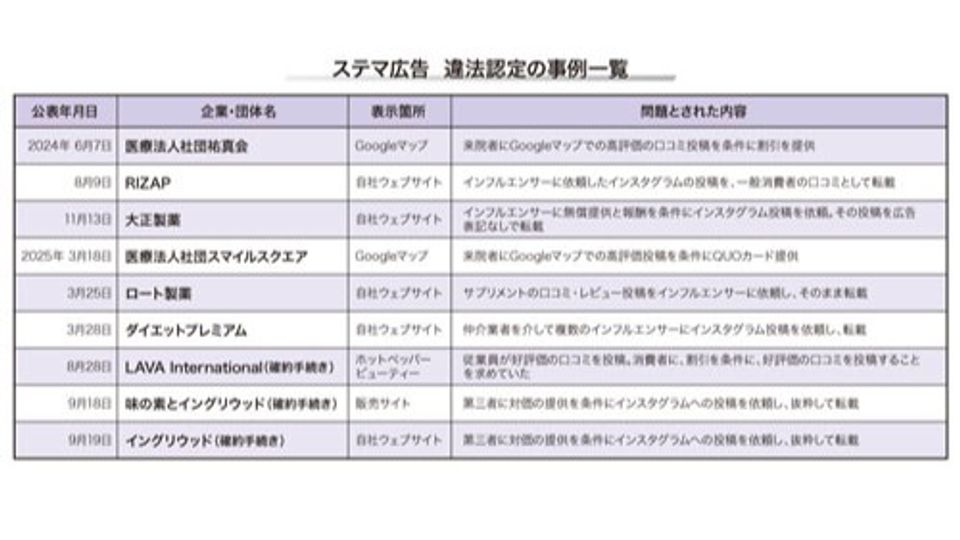 いわゆるステマ規制について、違反や、その疑いが指摘されるケースが増えている。