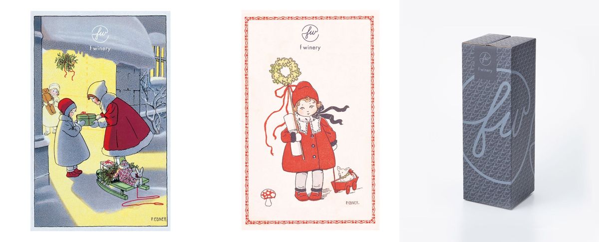 ▲「フェリシモ クリスマス アーカイブス コレクション」の中から、オーストリアの画家・イラストレーター パウリ・エブナーが描いたカードをもとに、特別にデザインした限定ラベル