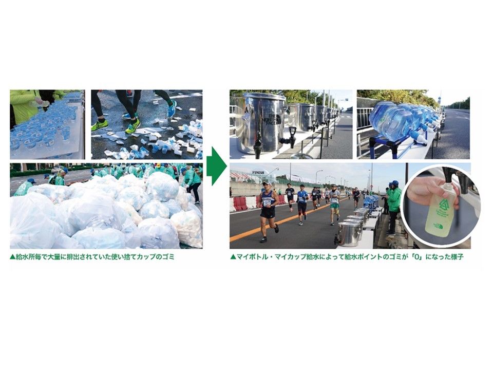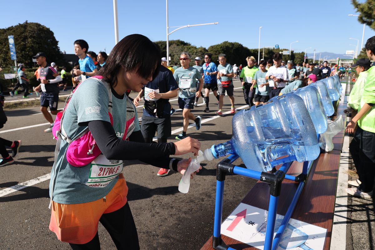 「アクアクララ」は、コース上に約180ヶ所のウォーターボトルを設置し、ランナーに水を提供する。これにより、使い捨てカップやペットボトルの排出をゼロにする取り組みを行っている。前回の大会では、約76%(約8.6トン)のゴミ削減が実現したという。