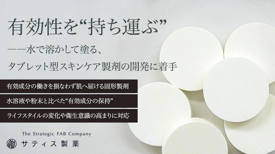 化粧品のOEM供給を行うサティス製薬(本社埼玉県、山崎智士社長)はこのほど、水で溶かして塗るタブレット型のスキンケア製剤の開発を始めた。