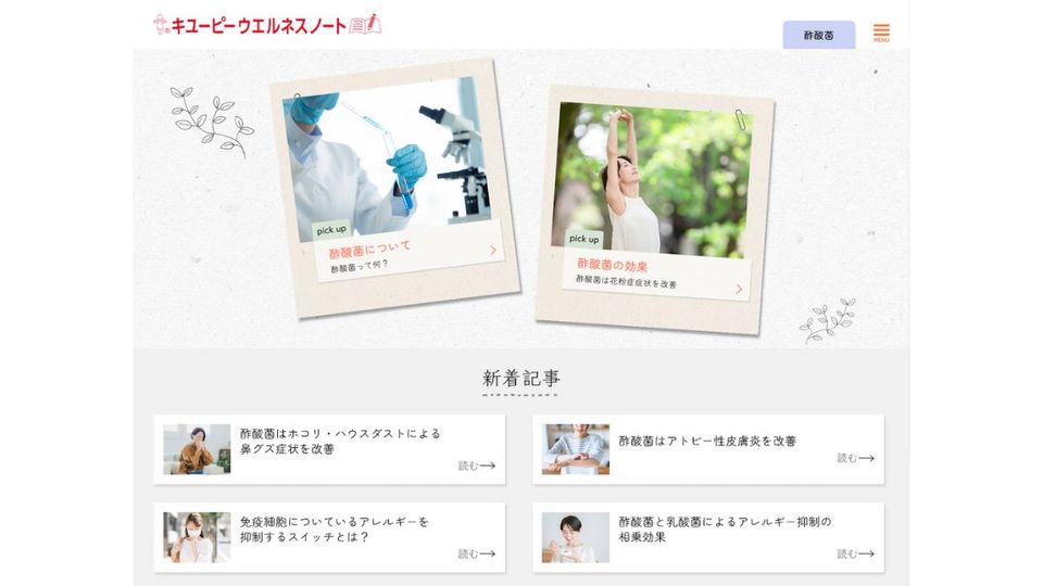 このメディアは、キユーピーウエルネスがこれまで通信販売を通じて提供してきたサプリメントや化粧品の成分に関する情報を、より広く伝えるために開設された。成分の詳しい情報だけでなく、健康・美容に関する気軽に読める記事や、社員や著名人のインタビューも掲載される予定だ。