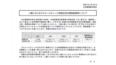 日本郵便、二輪運転前の点呼執行状況を発表 不適切は約24%に
