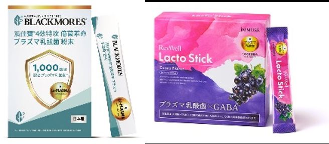 ▲「澳佳寶® 4效特攻億菌革命プラズマ乳酸菌粉末」(左)、「RevWell Lacto Stick」(右)