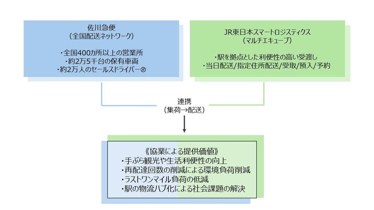 協業の目的は、手ぶら観光やインバウンド支援、いつでもどこでも受け取れる環境の実現、配送効率化と再配達回数の削減である。駅や空港、ホテル、商業施設などに受取ポイントを拡大し、通勤や旅行、買い物など様々なシーンで荷物の受取が可能になる。非対面受取が可能な「マルチエキューブ」を活用し、再配達回数を削減することで、ドライバーの負荷軽減やCO2排出量削減を推進する。