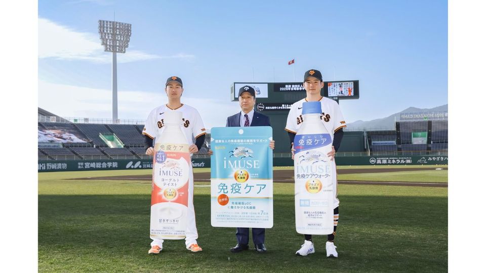 キリンホールディングスは、2026年も読売巨人軍とのオフィシャルサプライヤー契約を継続することを発表した。契約は9年目に入り、「プラズマ乳酸菌」配合の商品を提供する。2026年2月1日から2027年1月31日までの契約期間中、「小岩井 免疫ケアのむヨーグルト」や「キリン iMUSE 免疫ケアサプリメント」も提供される予定だ。