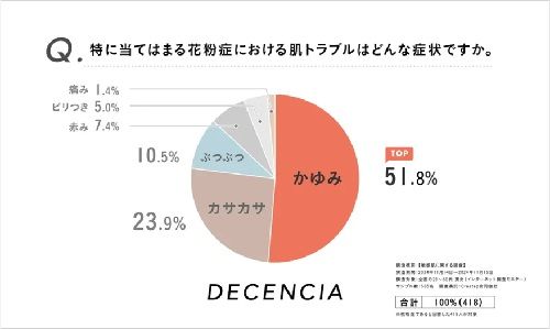 ▲花粉症による肌トラブル、最多は「かゆみ」「カサカサ」