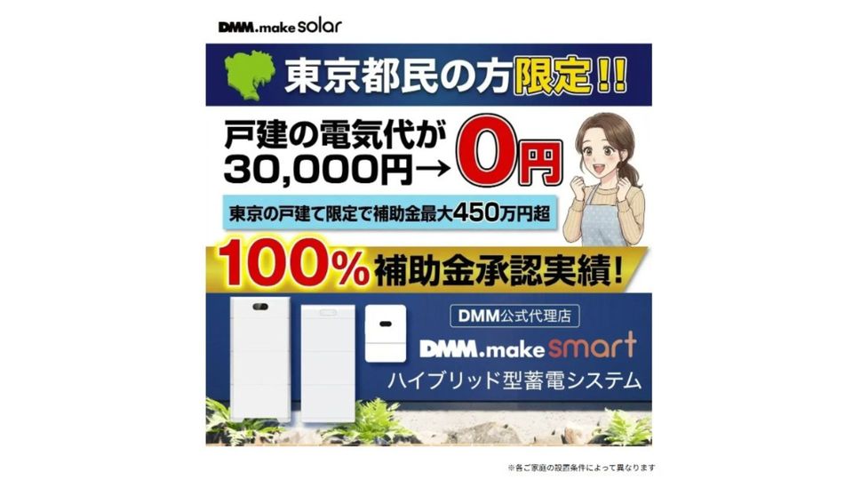 太陽光発電や蓄電池、V2Hなど販売や施工を行うえねこ(本社東京都、沢田陽由馬社長)は4月11日、DMM.com(本社東京都)が展開する太陽光発電や蓄電池事業の「DMMエナジー」とコラボレーション広告を開始した。DMMエナジーのブランド力を生かして認知や販売の拡大に取り組む。