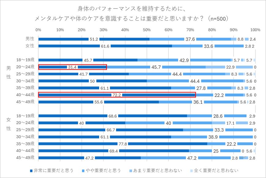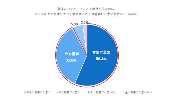 ▲身体のパフォーマンス維持に「ケアが重要」と回答した人は9割超