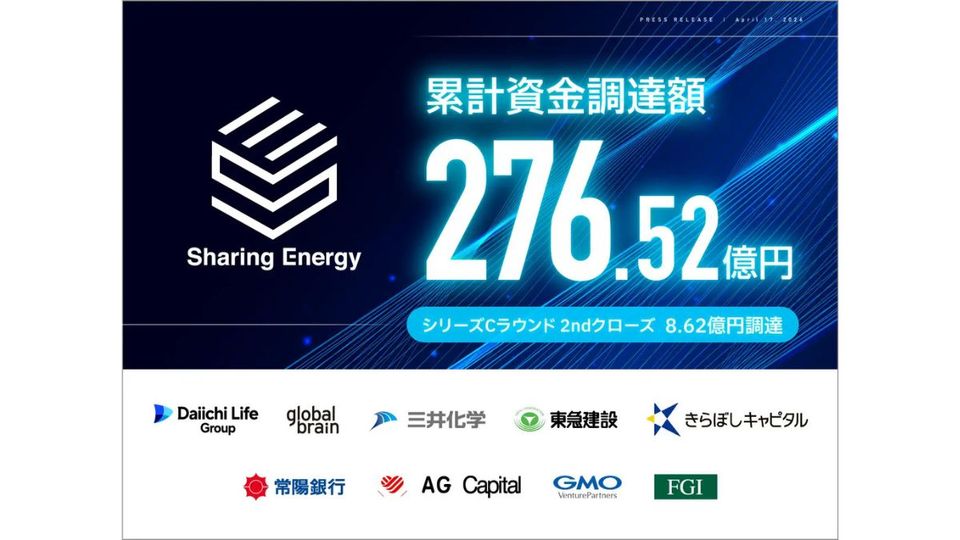 シェアリングエネルギー、8.62億円の資金調達