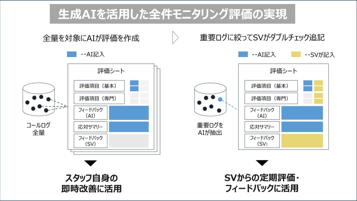 この取り組みでは、顧客分析AIエージェント「Flyle(フライル)」の機能を拡張し、月間約1万件の通話をAIが自動で解析・スコアリングする仕組みを構築した。従来の一部抽出によるモニタリングから、全通話データを資産化する「全件品質管理」へと進化させることで、顧客に寄り添う応対品質の実現を目指す。