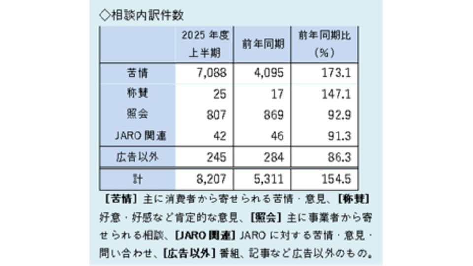 日本広告審査機構、 2025年度上半期広告苦情レポート 1.7倍と急増通販苦情は82%増